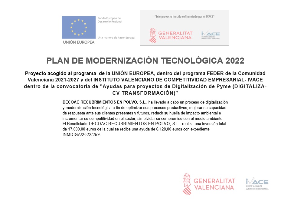 La pintura en polvo nos permite una gran gama de colores y acabados, aplicando productos: antigraffiti texturados y gofrados anticalóricos termo resistentes anticorrosivos antiestáticos antihongos y antibacterianos antiburbujas, desgasificantes alta durabilidad termocromático alta flexibilidad anti olores fluorescentes sedoso antihuella.